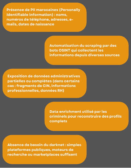 Le Maroc entre aujourd’hui dans une phase où la digitalisation des services publics, financiers et privés s’étend à un rythme inédit. Cette transformation, bien qu’elle améliore la fluidité administrative et l’accès aux services, se traduit par un élargissement effectif de la surface d’exposition numérique. Dans ce contexte, l’existence de données à caractère personnel marocaines sur des plateformes publiques de divulgation d’informations constitue un phénomène préoccupant. Il est à noter que certaines de ces plateformes opèrent comme des entrepôts automatisés, au sein desquels des déversements d’informations personnelles identifiables (PII) sont indexés par des robots d’indexation en sources ouvertes (OSINT), extraits en texte clair, puis dupliqués sur des serveurs accessibles sans authentification. Cette accessibilité favorise la collecte automatisée d’informations et simplifie l’enrichissement des données, étant donné qu’un attaquant peut constituer un profil cohérent en quelques minutes à partir de fragments dispersés.